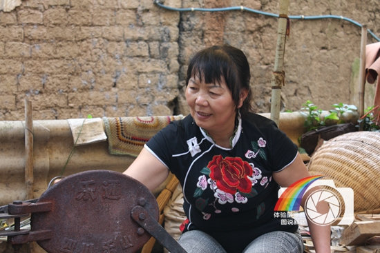 图片说明:七步场豆腐制作人李玉兰正在往火炉里加柴。