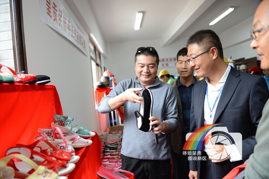 图片说明:呈贡区残联开展残疾人居家就业工作,组织残疾人制作呈贡民间手工艺制品绣花鞋,在万溪冲梨花节和采摘节期间,参加了非物质文化遗产呈贡手工艺制品展示,照片是残疾人在现场制作展示呈贡绣花鞋。
