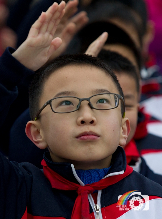 图片说明:向国旗敬礼,向人民敬礼,向祖国敬礼——小小的建设者,飘扬的红领巾会告诉你:你的明天不是梦!