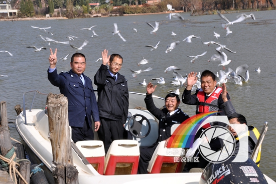 图片说明:挥手之间,但见海鸥飞翔。让人感动的,不仅仅是这样一幅和谐自然的画面,更是来自滇池卫士们笃定坦然的笑容。他们自信,他们从容,他们无愧于“时代建设者”的称号!
