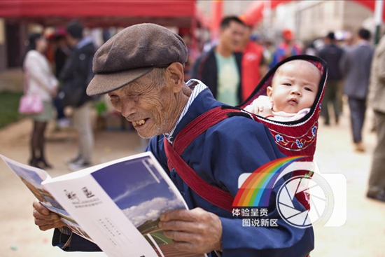 图片说明:一代早年的建设者和支持者慢慢老去,却有一代年轻的建设者正在成长。老人观看《新区》杂志,嘴角扬起的笑容,让我们看到新区的未来——无限繁荣……