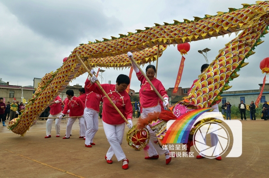 图片说明:岁月,在这里停止脚步,她们年轻的心随长龙自由舞动,舞出健康、舞出时尚,舞出新区欣欣向荣的每一天!