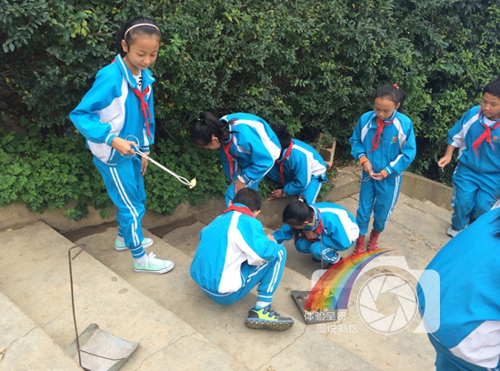 图片说明:图为龙街小学的同学们正在认真清理死角,一丝不苟的态度也很“敬业”。