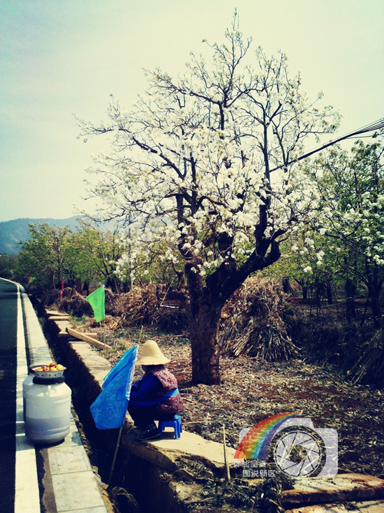 图片说明:拍摄于万溪冲路旁,梨花盛开时,老人家梨树下卖泡梨,展现了呈贡人民勤劳质朴的特点,以及他们与这片土地息息相关的生活。