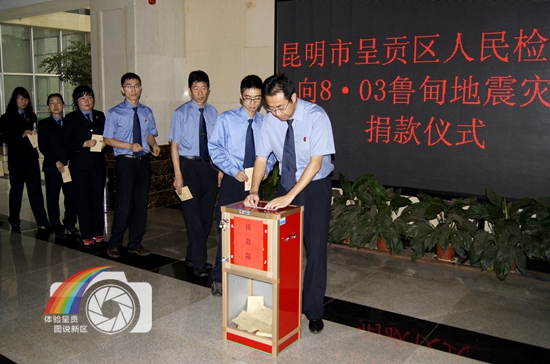 图片说明:图为呈贡区检察干警正在向8.03鲁甸地震灾区捐款,汇聚一份爱心,凝聚一份真情,捐献的是一份小小的心意,弘扬的是大大的正能量!