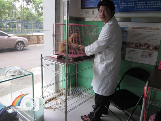 图片说明:在给住院动物输液。有一首流行歌这样唱到:曾经年少爱追梦,一心只想往前飞……这两句歌词,恰如其分的唱出了高级兽医师李永强的心声。80后的他,怀揣着对故乡的热爱,对自己兽医师这个职业的情有独钟,在创业的道路上克服艰难困苦,一路飞奔,实现自己的梦想。