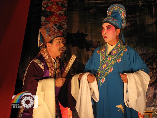 图片说明:演出《借亲配》剧照。李有信对滇剧情有独钟,热心滇剧的传播。除了积极参加协会组织的传承活动之外,他还拿出自己在工程建筑等方面获得的利润投入到滇剧等文化建设方面。由他个人出资100多万元举办400场滇剧演出,另外又出资100多万元在七甸建盖了一座600多平方米的剧场——“滇戏窝子”,为协会及滇剧爱好者提供了一个排练、交流、演出的场地,也在当地传播、保护和继承滇剧发挥了很好的阵地服务功能。