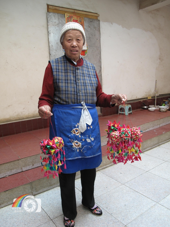 图片说明:桂英展示自己所编菱角。素有“滇中果菜鱼米乡”之称的呈贡可谓一颗镶嵌在滇池东岸的明珠。早在春秋末至战国中期,呈贡凭借其发达的文化艺术成为滇文化的发祥地之一,并获“中国民间特色艺术之乡”的美誉。深厚的历史文化积淀,培育了一批又一批优秀的民间工艺美术创作者,年近八旬的王桂英老人就是他们中的一员,她是滇中草编菱角工艺的带头人。
