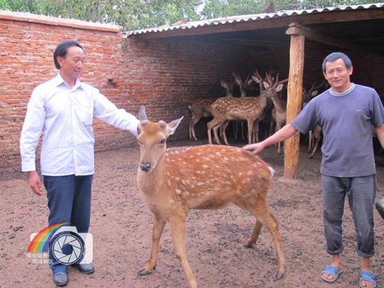 图片说明:杨嘉宏(左)与饲养的马鹿。呈贡万溪冲是远近闻名的水果之乡,北接大学城,南依梁王山,海拔2000多米,是有着近千年种植历史的滇中名果“宝珠梨”的主产区。每年阳春三月,万亩果园春深似海,桃红梨白交相辉映,让人流连,好一片“千树万树梨花开”的醉人景象。杨嘉宏和他的果乡苑农家乐就在万亩梨园深处,被万溪果乡的春华秋实淹没其中。