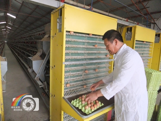 图片说明:呈贡有一个家喻户晓的“养鸡大王”,他就是龙城街道龙街社区养殖专业户师绍明。20多年他与鸡为伴,当下养蛋鸡12万只、日产鸡蛋达7吨,实现年利润50—100万元。村里人说:“师绍明鸡窝里滚出的不是鸡蛋,而是真正的金蛋蛋!”。
