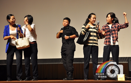 图片说明:图为呈贡分局女民警们在校园舞台上为大学生演绎情景剧,用生动的故事情节作为宣传和培训的手段,让大学生们提高防盗防骗的技能,谨防上当受骗。