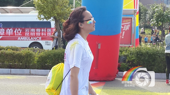 图片说明:魅力呈贡彩虹跑时,一位参与者昂首阔步走向终点。
