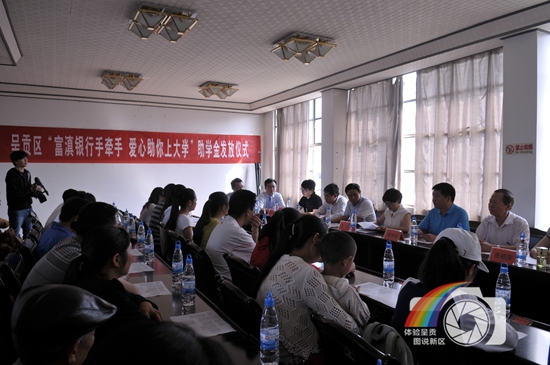 图片说明:呈贡支行自开展党的群众路线教育实践活动以来,认真领会教育实践活动的精神内涵,积极听取各方面的意见和建议。受总行内改行风、外塑行貌感召要求,针对我支行地处呈贡大学城片区这一特点,为体现支行社会责任和人文关怀。联合共青团昆明市呈贡区委,发起并组织“富滇银行手牵手,爱心祝你上大学”捐资助学活动。开展活动以来,全行员工积极热心、慷慨解囊,共募集善6万余元。