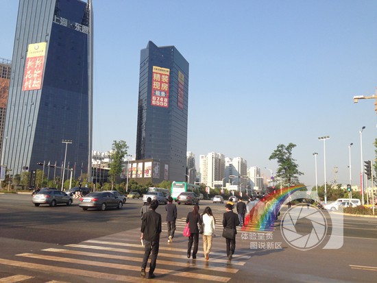 图片说明:呈贡新区经过十多年的发展,国际区域性大都市逐渐成型。图为走在呈贡春融街上的人群。