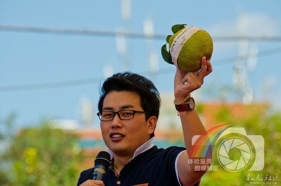 图片说明:呈贡第二届万溪宝珠梨采摘节上,主持人在介绍宝珠梨。