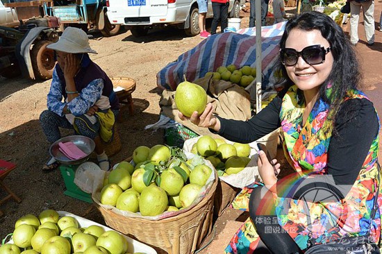 图片说明:万溪冲的宝珠梨熟了,引来游客前来品尝购买。