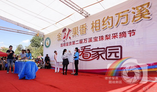 图片说明:呈贡第二届万溪宝珠梨采摘节上,梨王评比正在进行。