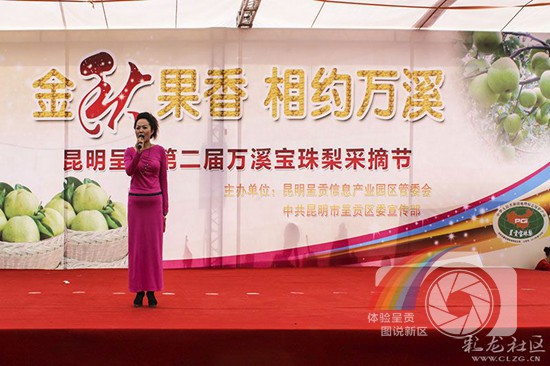 图片说明:呈贡举行万溪宝珠梨采摘节, 报幕员在介绍情况。