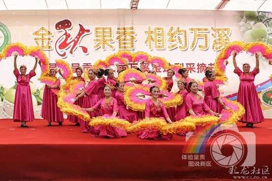 图片说明:呈贡举行万溪宝珠梨采摘节上的舞蹈表演。
