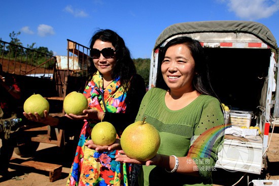 图片说明:猜,手上的宝珠梨,哪个更大。