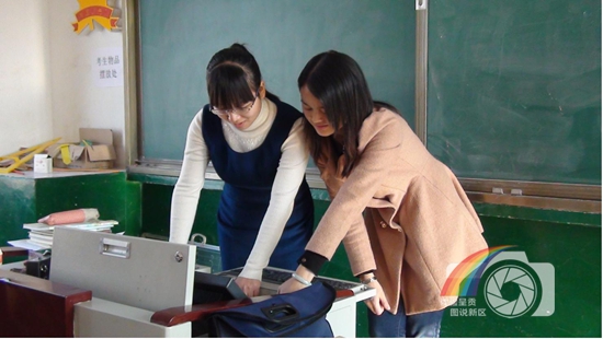 图片说明:图为龙街小学段燕老师正与同事交流教学工作。