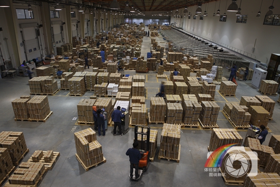 图片说明:图为百年老企云南白药呈贡产业区物流中心,工人们正在忙碌。