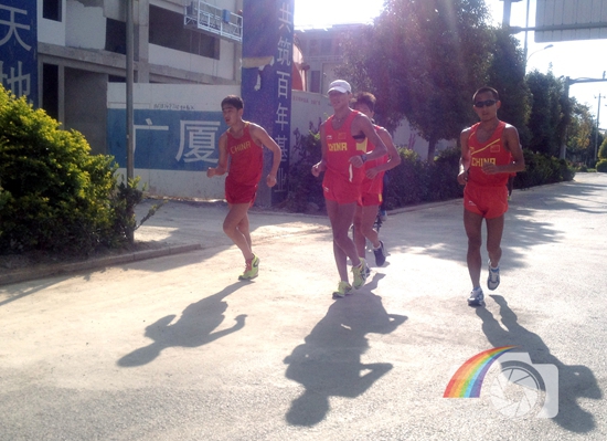 图片说明:拍摄于滇池星城路面,运动员们正在锻炼身体。