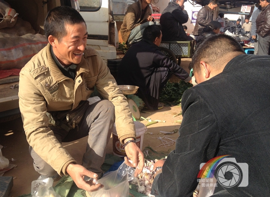 图片说明:拍摄于呈贡农贸市场,小贩的热情让他赢得许多回头客。