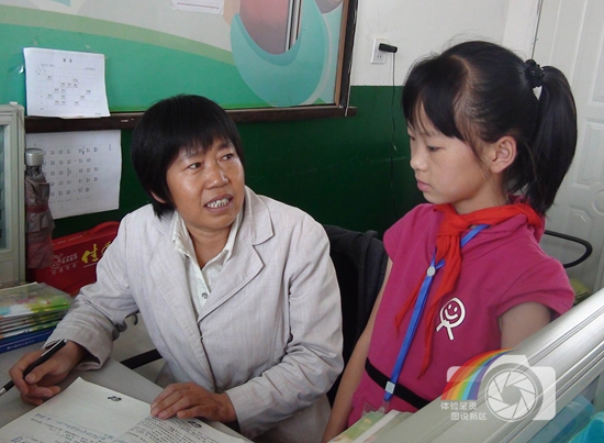 图片说明:图为龙街小学郭美仙老师正与学生交心谈心,为孩子答疑解惑。