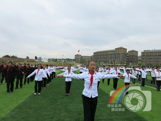图片说明:云大附中呈贡校区(呈贡新区中学)举行冬季运动会,学生在进行广播体操表演。