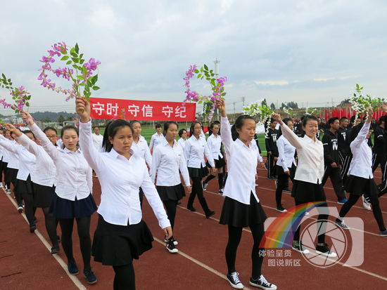 图片说明:云大附中呈贡校区(呈贡新区中学)举行冬季运动会,开幕式上,运动员入场。