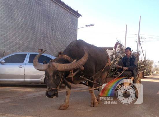 标题:老人、老牛和新房、新车