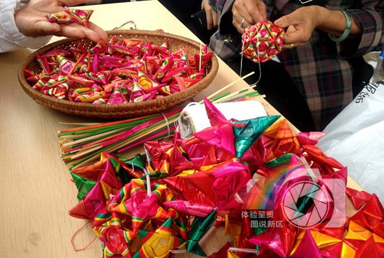图片说明:拍摄于呈贡洛龙公园广场。图为非物质文化遗产传人李老师正在缝制已经用秸秆编好的菱角。
