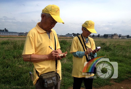 图片说明:拍摄于呈贡飞机场。图为两位热爱历史的银发老人,站在厚重的土地上,正认真记录着文管所工作人员的娓娓讲述,那份虔诚和庄重,让人感动。