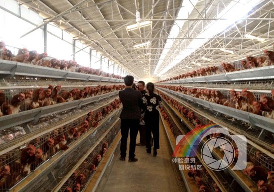 图片说明:图为呈贡失地农民自行创业,开设养鸡场发家致富。媒体记者正对创业者进行采访。