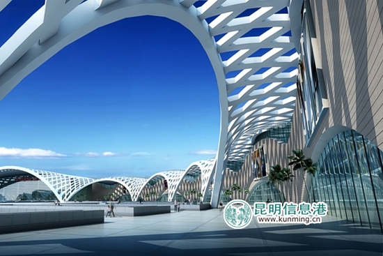 昆明滇池国际会展中心是云南省、昆明市确定的重点建设项目,是云南省继长水国际机场之后又一标志性工程,项目主体结构分为13个展览馆,展览馆外观极似“孔雀翎羽”,远远望去,整个会展中心呈现出“孔雀开屏”的绚丽奇景,美艳动人。
