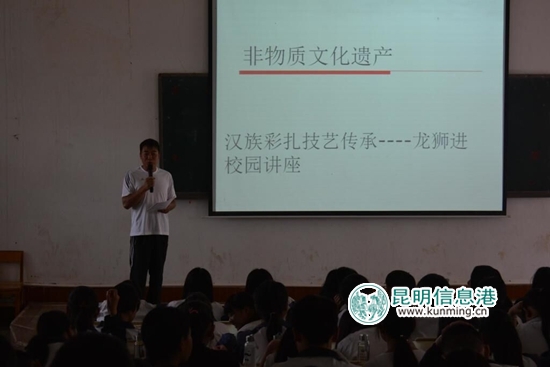 昆明信息港讯 记者栗飞 通讯员郭武辉 李榕萍 亦是运动,亦是舞蹈,小狮一人舞,大狮双人舞,手舞足蹈之际,或腾翻、或扑跌或朝拜,无不活灵活现地赋予了喜怒哀乐的个性。日前,在官渡区职业高级中学的课堂上,非物质文化“龙狮彩扎”传承人毕付华给学生们上了一堂生动的非遗课。
