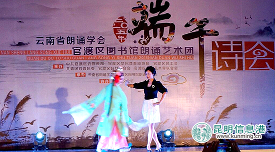 昆明信息港讯 记者栗飞 通讯员李伟 林增 为大力弘扬中华民族优秀传统文化,唱响“我们的节日”这一主题,6月19日,由中共官渡区委宣传部、官渡区文化体育旅游局、官渡区总工会、共青团官渡区委、官渡区妇女联合会、官渡区文学艺术界联合会主办,云南省朗诵学会、官渡区图书馆朗诵艺术团承办的官渡区“2015年端午诗会”在官渡区国投大厦综合楼四楼会议厅隆重举行。区级领导,8个街道办事处、区属各部门约400余人参加了当天的“2015年端午诗会”活动。