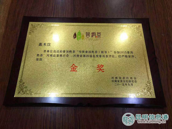 2015年9月12日,以“健康普洱、文化普洱、财富普洱”为主题的2015普洱茶·河南品鉴展示会在郑州国香茶城举行。由云南六大茶山茶业股份有限公司战略合作伙伴——河南郑州嘉木饮茶业选送的六大茶山“号级普洱茶熟茶(陆号)”,参加2015普洱茶·河南品鉴展示会——河南省第四届名优普洱茶评比,经严格审核,荣获“金奖”。