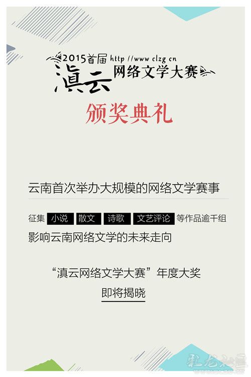 2015首届滇云网络文学大赛颁奖典礼将于12月19日隆重举行,诚邀各位参赛者、各界人士积极参加,一起来见证奇迹时刻!