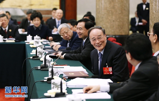 3月8日,中共中央政治局常委、中央纪委书记王岐山参加十二届全国人大四次会议辽宁代表团的审议。 新华社 记者鞠鹏/摄