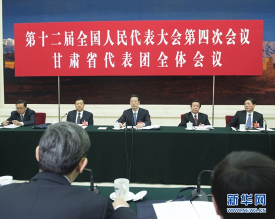 3月8日,中共中央政治局常委、国务院副总理张高丽参加十二届全国人大四次会议甘肃代表团的审议。 新华社 记者王晔/摄