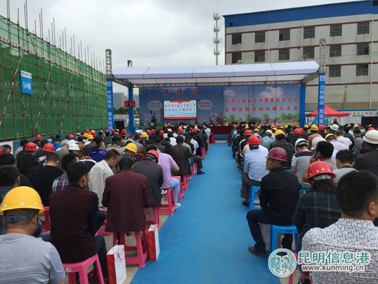 昆明信息港讯 记者龙泉积 9月9日,官渡区建设工程质量安全生产定期会暨现场观摩交流会在金科·阳光里项目现场举行。来自辖区内各在建项目建设单位项目负责人、施工单位项目负责人、监理单位项目总监及企业代表共300余人参加观摩。