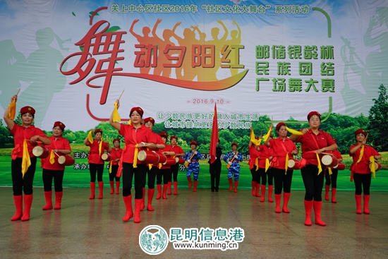 昆明信息港讯 通讯员熊艳琳 郭武辉 9月10日上午,官渡区关上中心社区联合邮储银行共同主办的“邮储银龄杯”民族团结广场舞大赛暨关上中心社区文化大舞台活动火热开幕。
