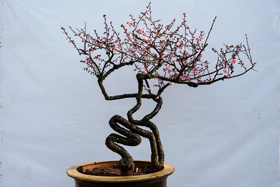 图片说明:以枝干造型的奇特为背景,而花蕾的怒放比艳丽
