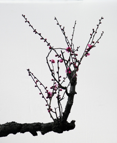 图片说明:通过镜头把梅画的形态展现出来,加之梅花后有白板作为背景,再利用光线和曝光度让图片看起来犹如画一般。