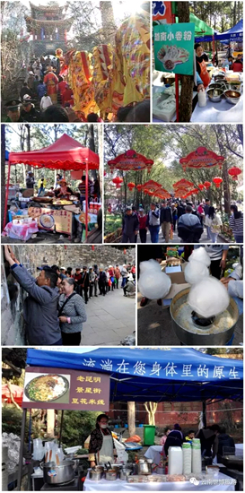 金殿庙会这一天,极具老昆明特色的踩高跷表演、耍花灯等节目都将上演。而民间手工工艺品、“嘣咚”、烤肉串、烧豆腐、棉花糖……几乎昆明所有的特色小吃和传统民间特色工艺品都可以找到。