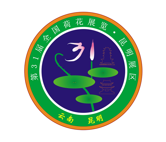 以荷花的花朵侧视形似数字“31”寓意第31届荷花展,荷花整体上又如点亮的灯盏,花朵如火炬火苗,而荷叶如托,托住如灯笼般发光的“岳阳楼”与“黄鹤楼”,暗示了中国历史文化名楼参与花展,外围围绕文字点明必要的标志元素。