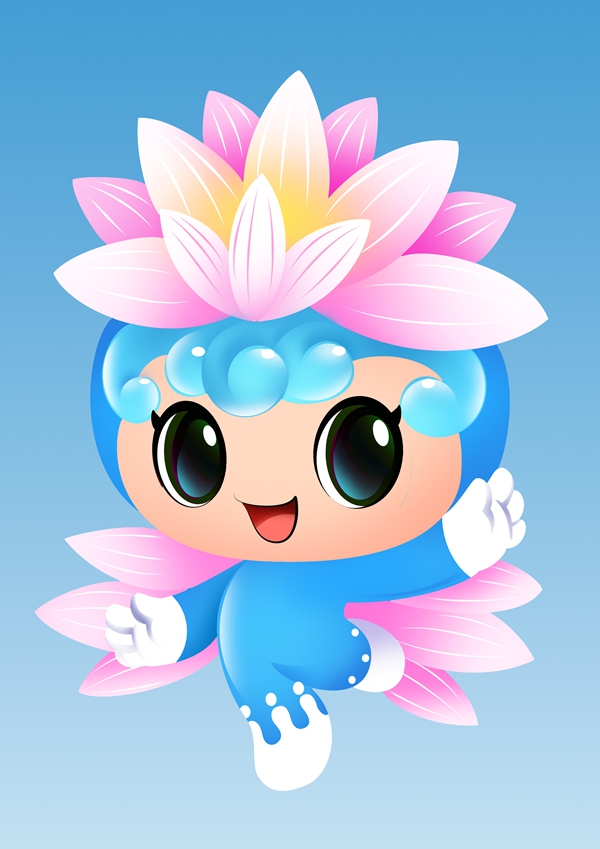 吉祥物荷荷以代表荷花作为设计主体,结合大观公园中清澈的湖水元素,通过拟人化手法绘制。以盛开的荷花设计成美丽的装饰和小翅膀,如同活灵活现的荷花精灵,守护具有重要文化意义的大观公园。