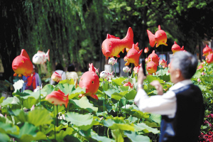 造型各异的装饰为荷花展添彩。记者杨艳辉/摄